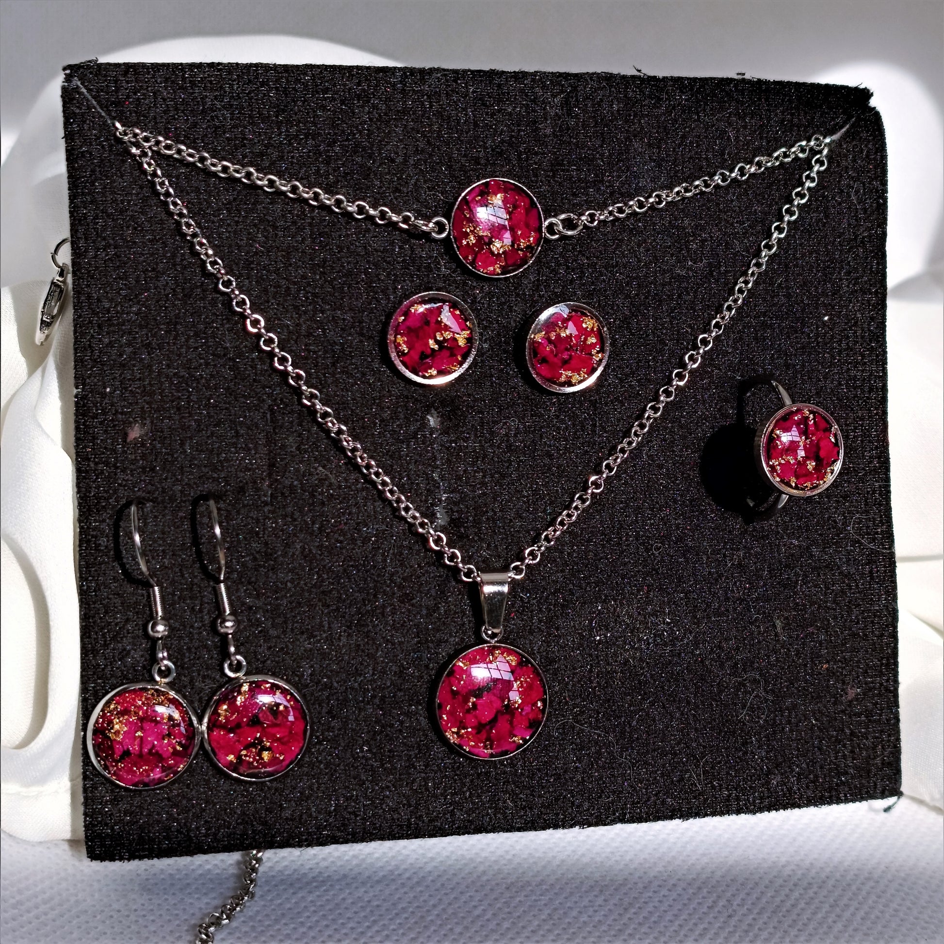 Necklace: 14mm round frame made with dried rose petals and 18 inch length chain!