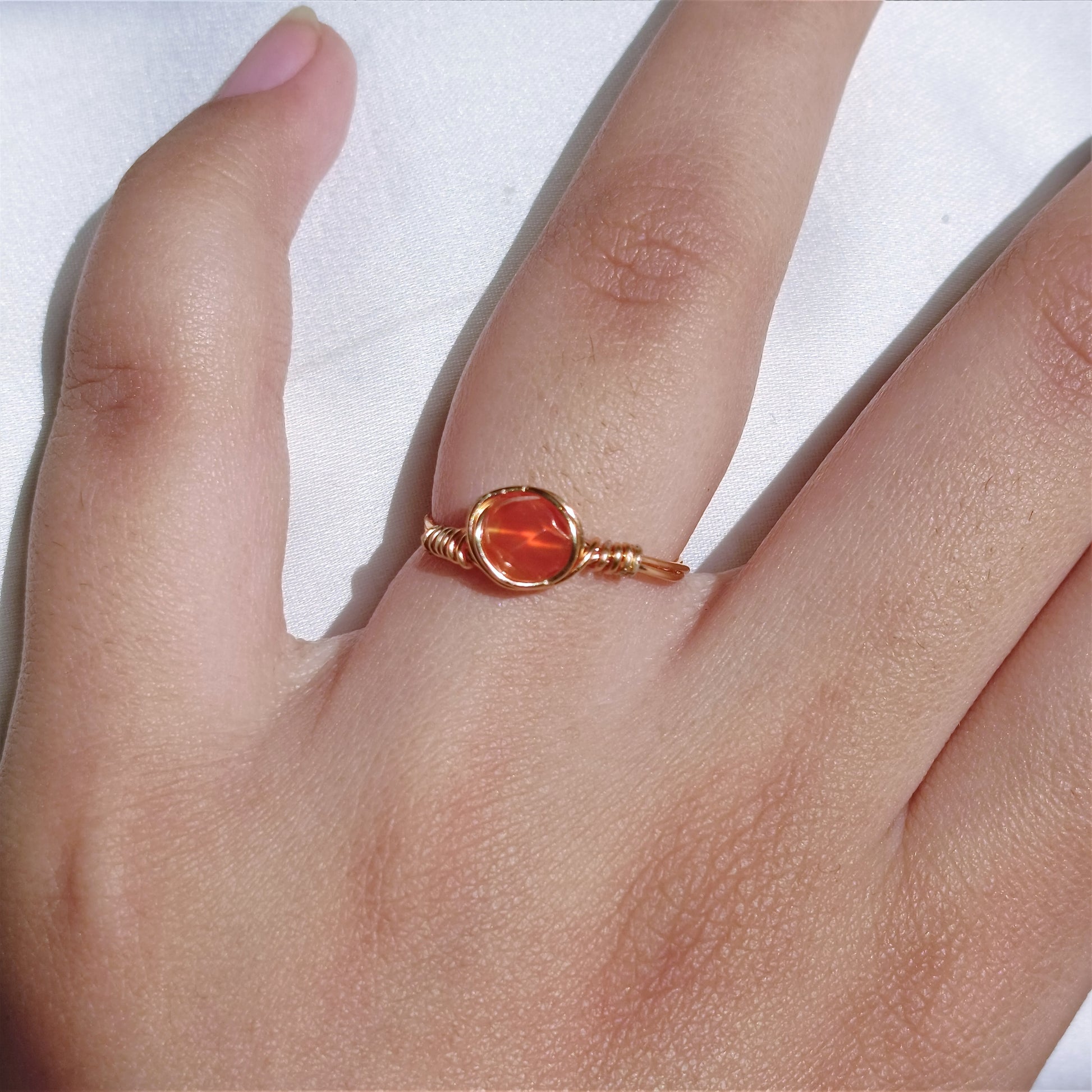 Handmade wire wrapped ring using faceted carnelian stone stone.